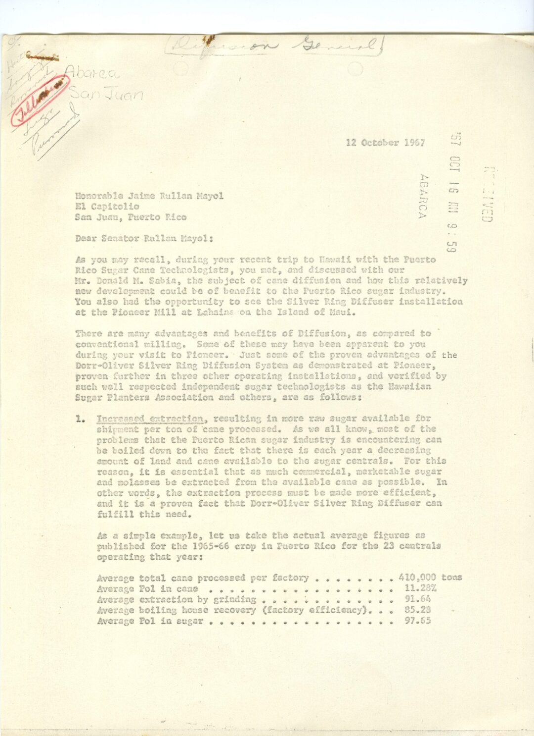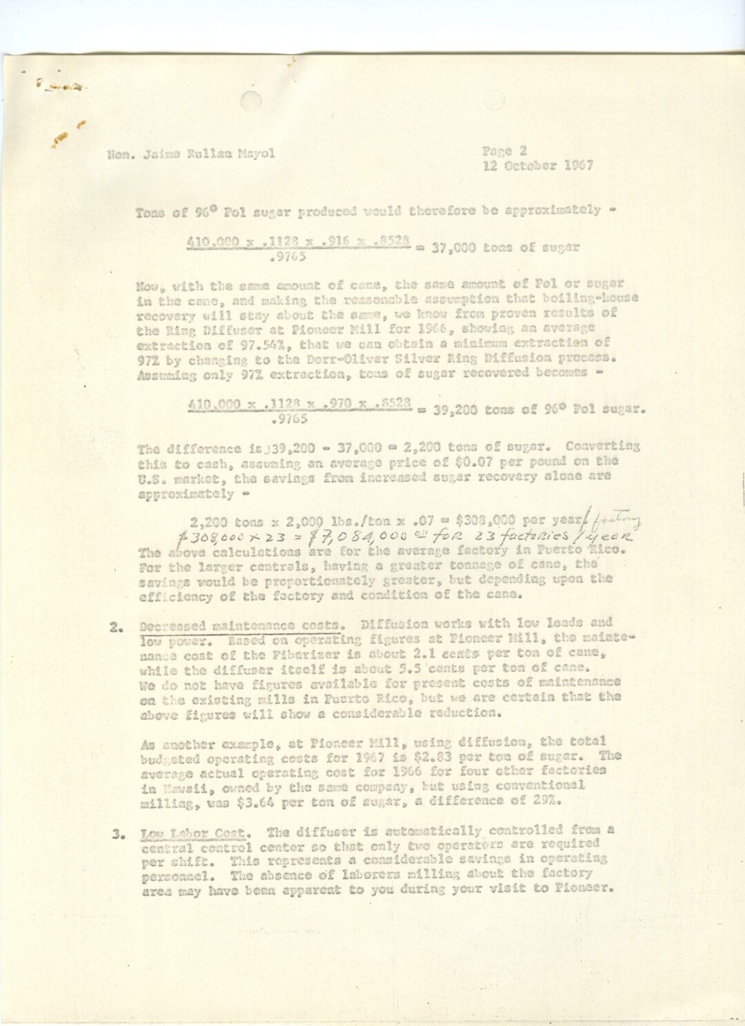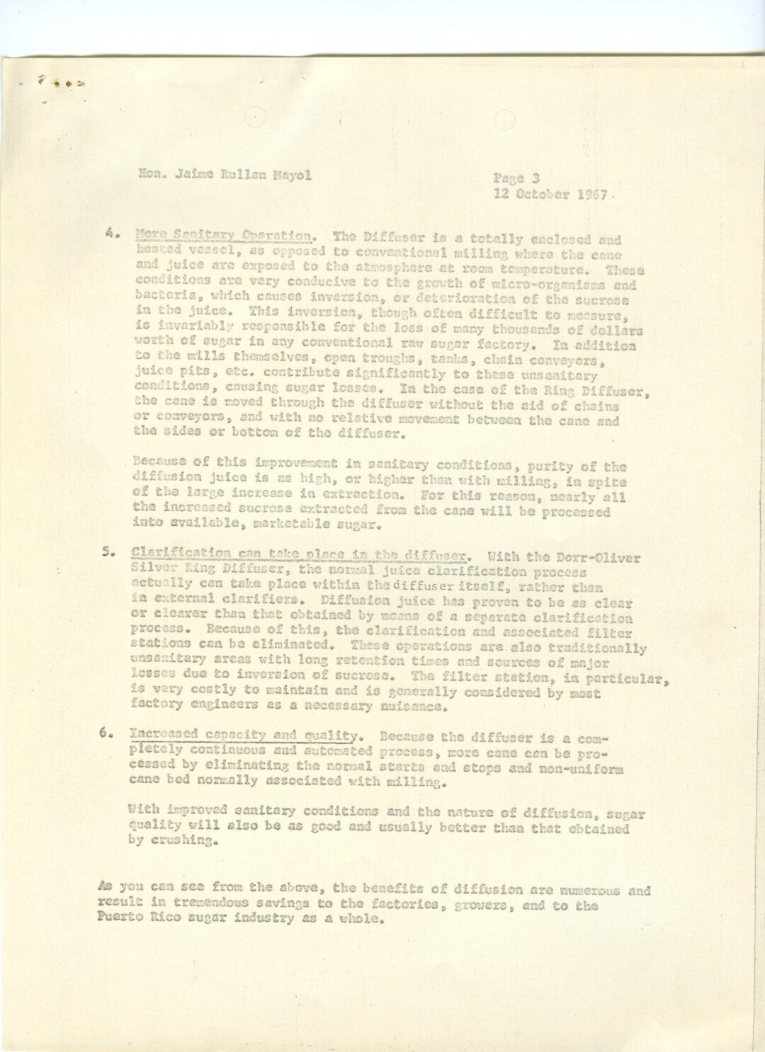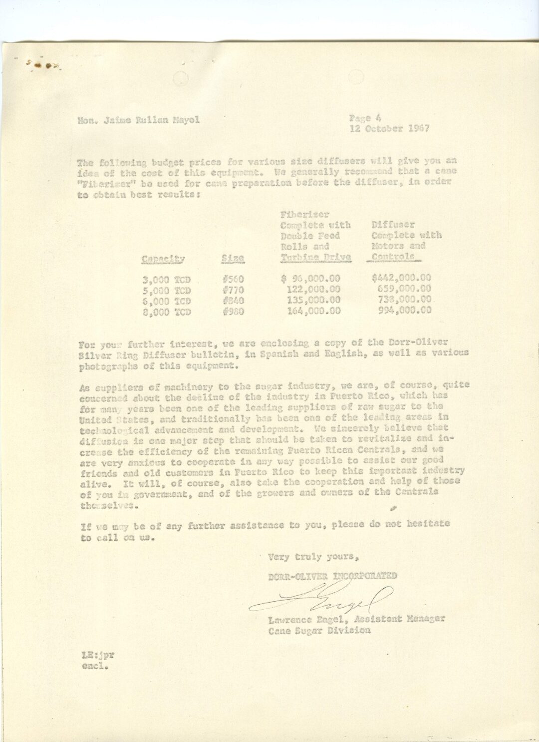 [11] Lawrence Egel, Carta a Jaime Rullán Mayol, subdirector de la División de Caña de Azúcar en Dorr-Oliver, 12 de octubre de 1967, Caja 55, Colección Fundición ABARCA, Archivo de la AACUPR.