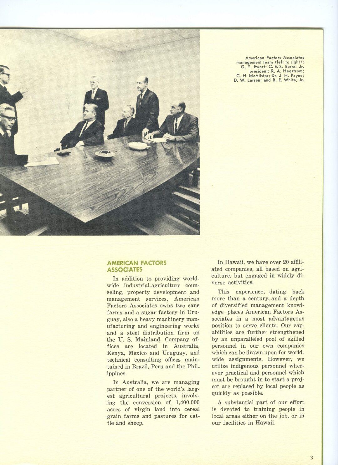 Se han hallado documentos que detallan transacciones, diseños y correspondencia que tratan explícitamente sobre la creación e implementación de tecnologías revolucionarias para la industria agrónoma a nivel mundial, tales como el Difusor de Anillo, pero ninguna en Puerto Rico… La fundición ABARCA, responsable por la fabricación de una cantidad amplia de estas piezas, aparece en muchas, si no todas las conversaciones que discuten la implementación estratégica de estas piezas tecnológicas. Se encuentran catálogos de empresas aseguradoras como American Factors Associates Limited (Figura 1-5) y de empresas agrónomas ubicadas en “Esperance” (Figura 6-8), uno de los mayores desarrollos agrícolas del mundo en Australia.