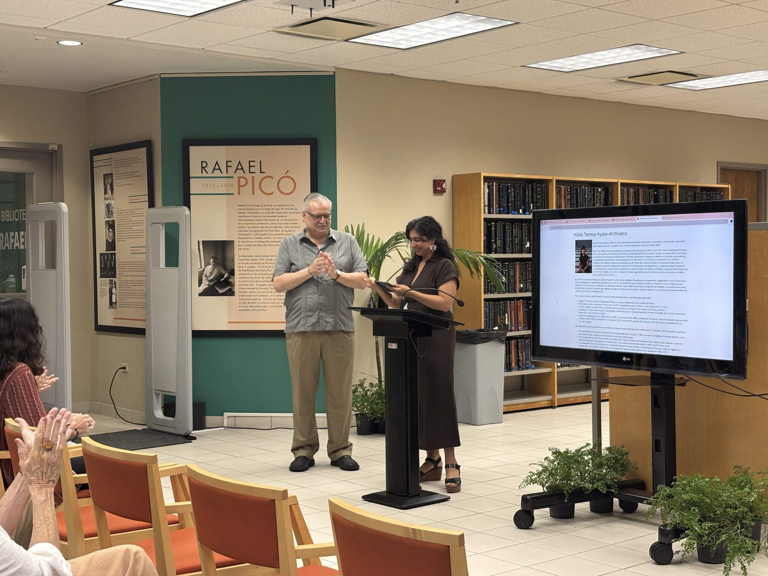 Por último, se le rindió homenaje a Hilda Teresa Ayala, ex directora del Archivo General de Puerto Rico, quien nos compartió sus reflexiones sobre el trabajo realizado durante los cinco años que ocupó el cargo.