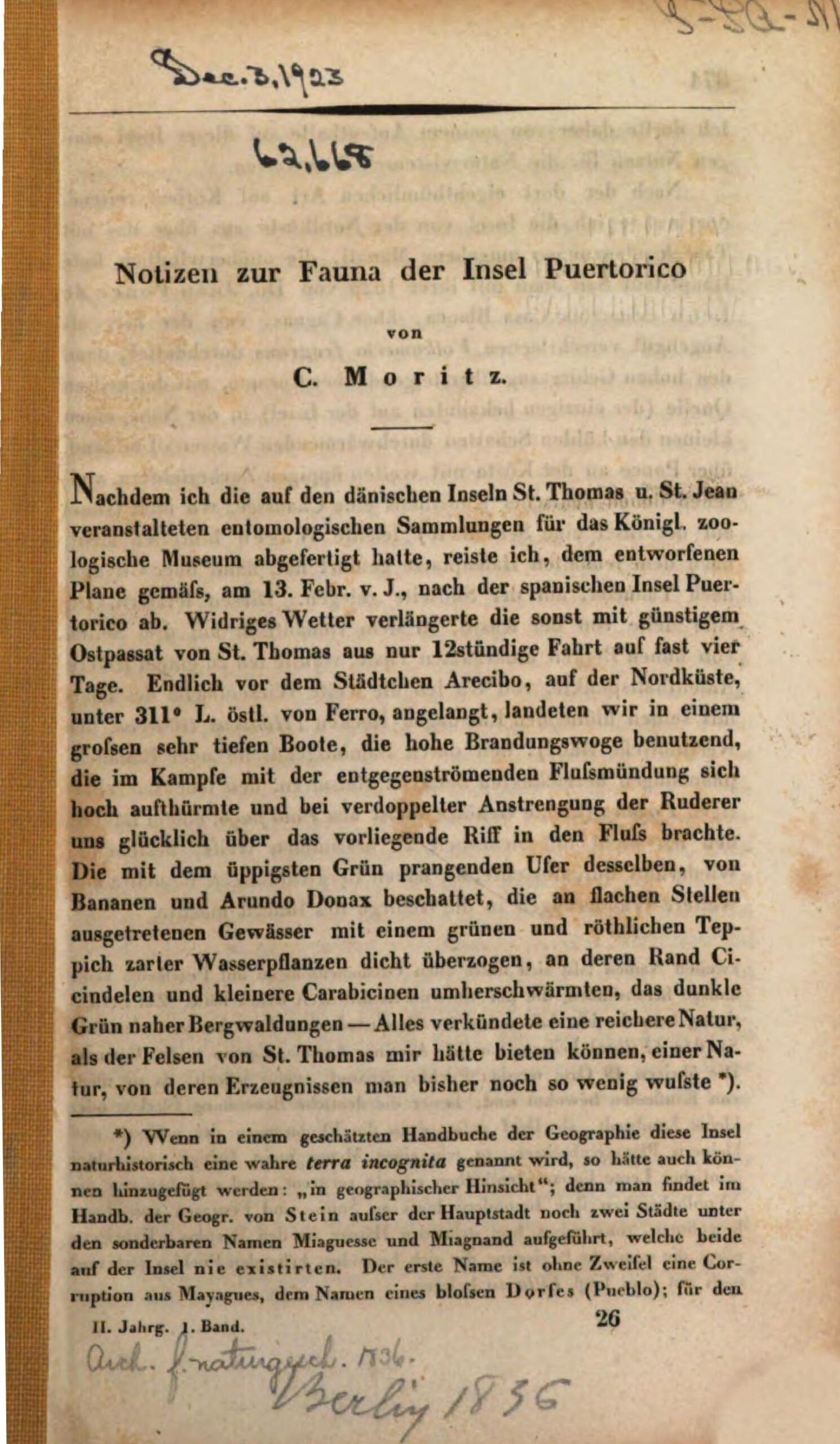 C. Moritz 1923 (1836) (Moritz-Notizen zur Fauna der Insel Puerto Rico)