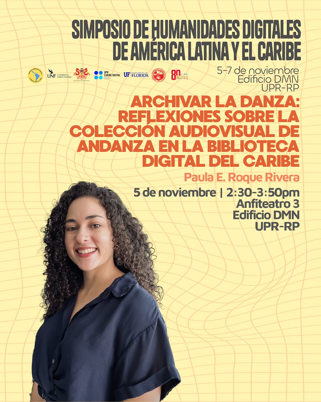 Nuestra coordinadora de digitalización, Paula Roque Rivera, presentará su panel “Archivar la danza: Reflexiones sobre la colección audiovisual de Andanza en la Biblioteca Digital del Caribe”, que se llevará a cabo el miércoles 5 de noviembre a las 2:30pm. En esa misma sesión, el pasante Luis Sánchez Pérez presentará su proyecto “Archivo digital de la colección de revistas Teve Guía y Vea”.