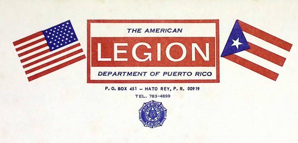 Como cualquier gesta cultural realizada en esta tierra, el trabajo en el Archivo General de Puerto Rico supone numerosos retos y desafíos, aunque, de igual manera, grandes sorpresas y el descubrimiento de joyas inexploradas o minusvaloradas de nuestra historia. Este fue el caso de documentos del departamento de Puerto Rico de la American Legion (de ahora en adelante la AL) establecida en París en 1919 entre veteranos de las American Expeditionary Forces estacionados en Francia, y la cual llegó a Puerto Rico el mismo año.[1] Como organización de carácter transnacional que implicaba redes de sociabilidad, la AL suponía el establecimiento de redes y fragmentos de red en torno a una serie de puntos, aunque su centro se localizaba en Estados Unidos.[2] La organización creció hasta contar con 17,100 departamentos (es decir, capítulos) y con 3 millones de integrantes después de la Segunda Guerra Mundial, esparcidos entre varios países entre los que se encontraban México, Panamá, Argentina y Canadá y colonias como Hawai’i y Puerto Rico.[3] En casos como el de este último, existía tanto un departamento (con sede en Hato Rey, San Juan) como algunos posts (o puestos alrededor de la isla). Entre estos figuran el establecido en Bayamón (el número 48), el correspondiente a Guayama (el número 4) y unos tercero y cuarto en ciudades que aún no han sido identificadas, a las cuales les correspondían los números 49 y 52, respectivamente.[4] La First Woman American Legion también tenía presencia en Puerto Rico con un solo puesto, el cual aún no ha podido ser localizado.[5] La amplia presencia de la AL en Puerto Rico podría indicar su importancia en el proyecto geopolítico en el que estuvo insertada la organización en cuestión.[6]